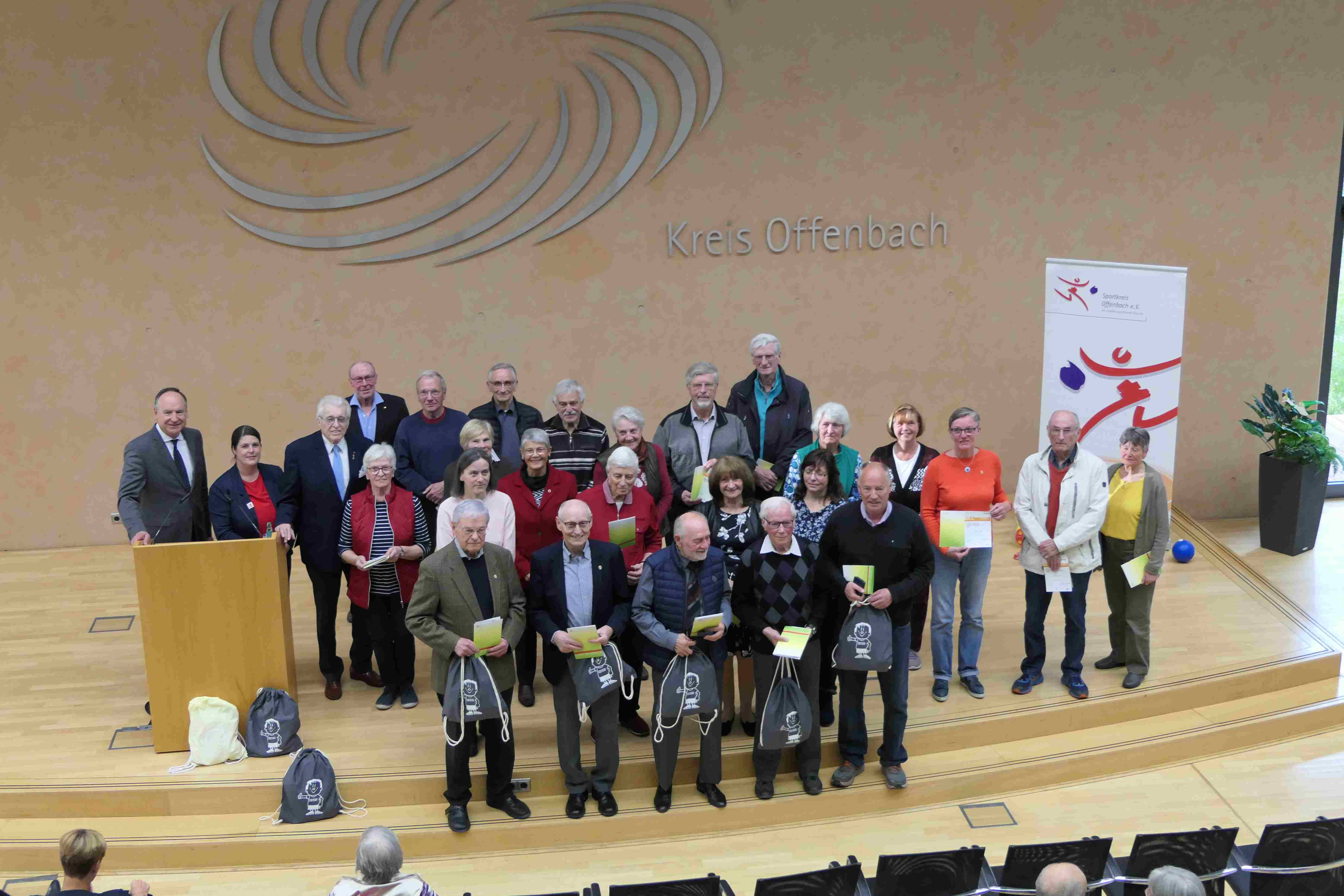 Die erfolgreichsten Vereine, Schulen, Familien und Mehrfachabsolventen wurden von Landrat Oliver Quilling, dem Ehrenvorsitzenden des Sportkreises Offenbach Peter Dinkel sowie der Sportabzeichenbeauftragten des Sportkreises Mareike Bauer, die auch kurzweilig durch den Abend führte, für ihre Leistungen im vergangenen Jahr im Kreishaus in Dietzenbach ausgezeichnet.